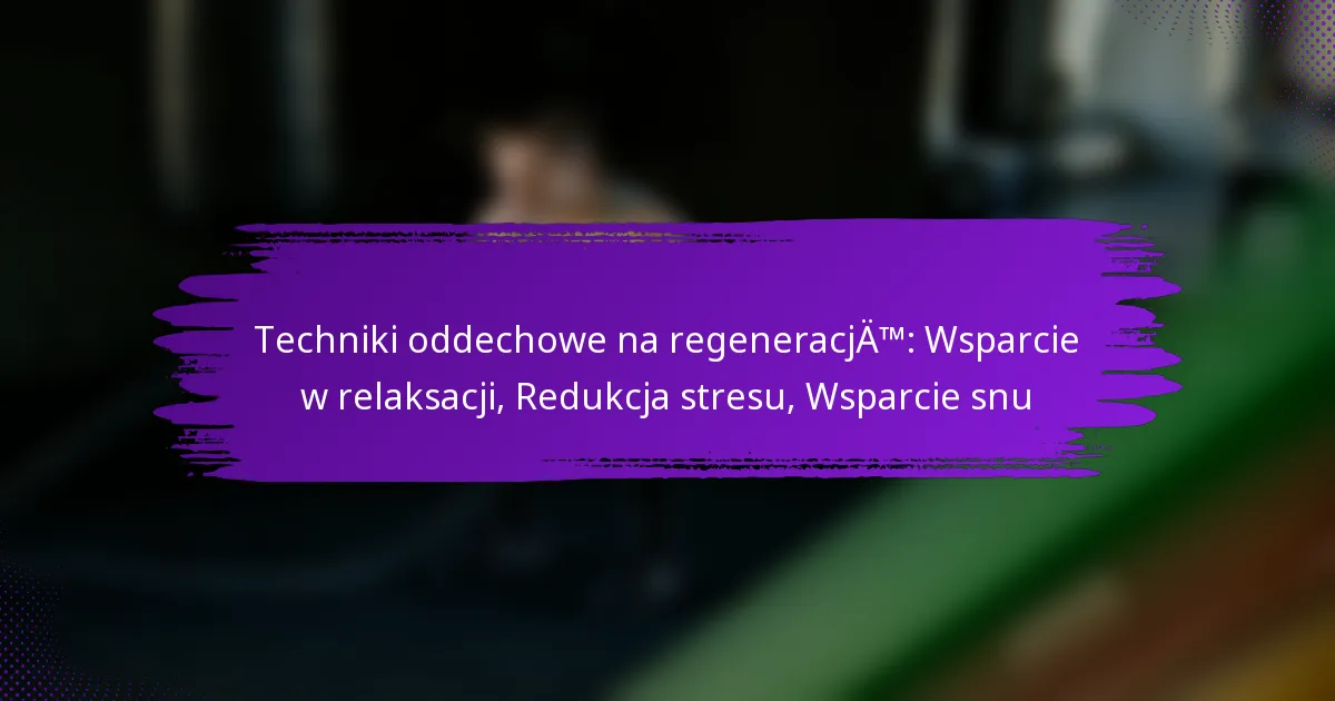 Techniki oddechowe na regenerację to uporządkowane metody kontrolowania oddechu, które promują relaksację, redukują stres i poprawiają jakość snu. Techniki te mogą być korzystne w różnych kontekstach regeneracyjnych, w tym w rehabilitacji fizycznej i wsparciu zdrowia psychicznego.