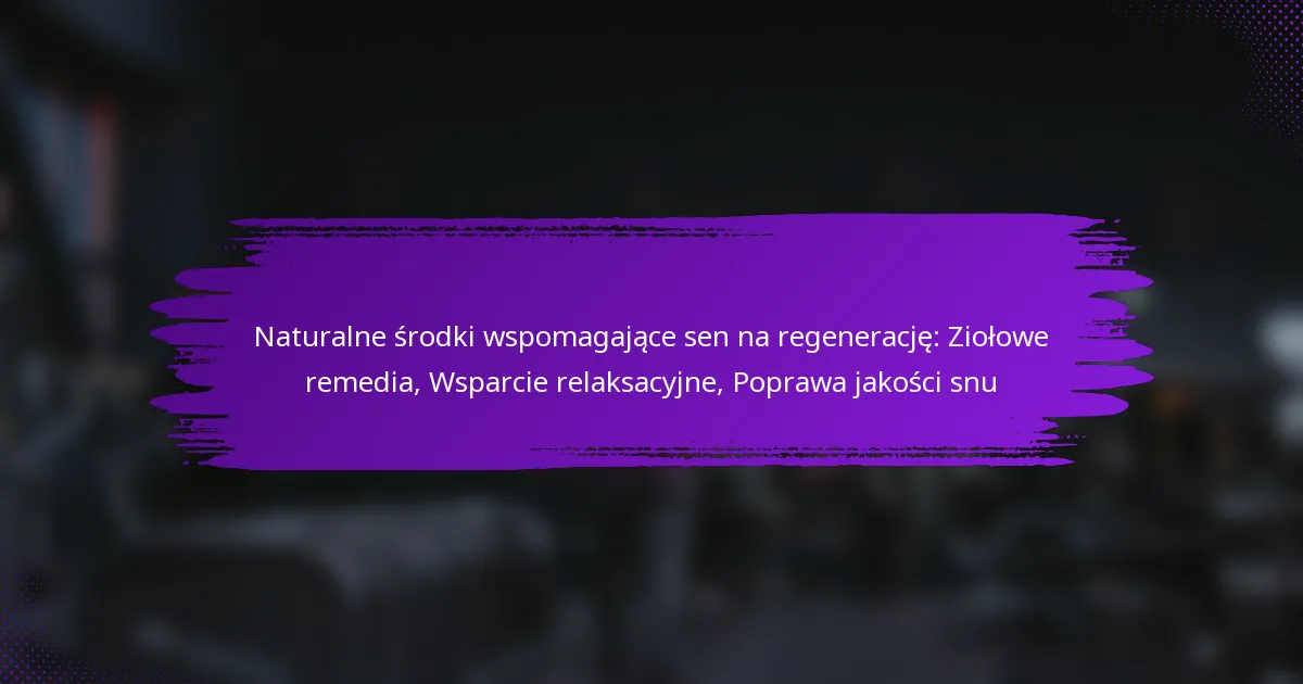 Naturalne środki wspomagające sen na regenerację: Ziołowe remedia, Wsparcie relaksacyjne, Poprawa jakości snu